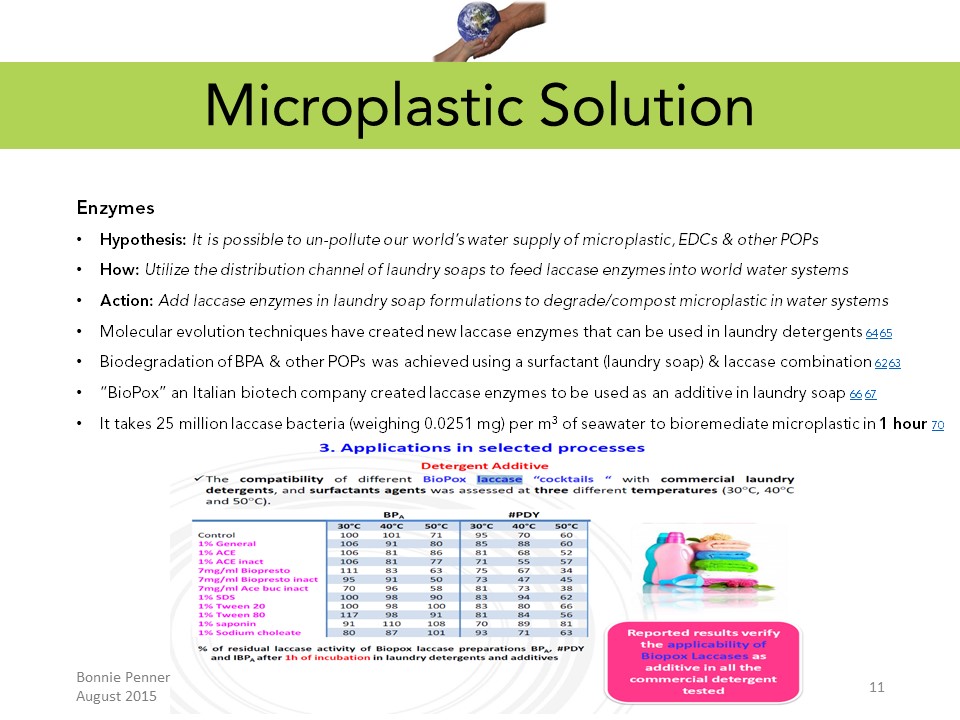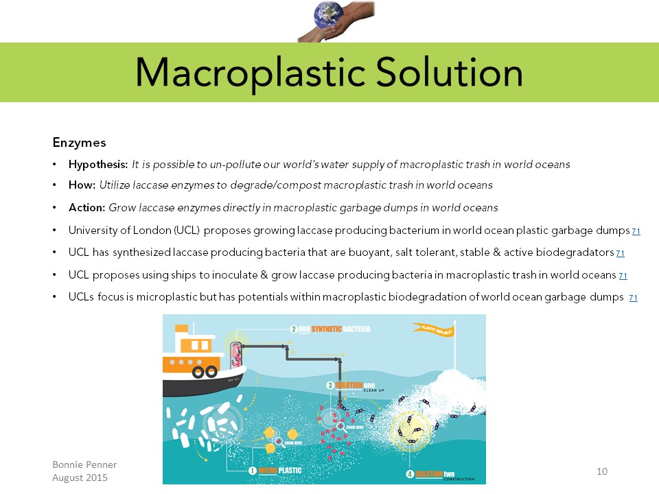 It is possible to remove "The Macro & Micro Plastic Garbage" in our world’s oceans and waterways by utilizing the degradation/composting abilities of natural laccase enzymes produced by microorganisms native to our environment.