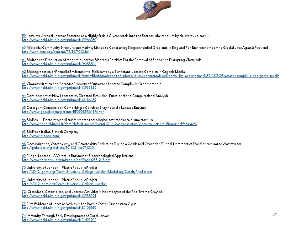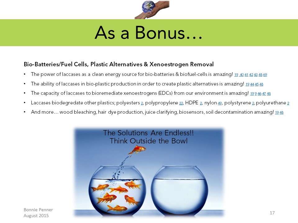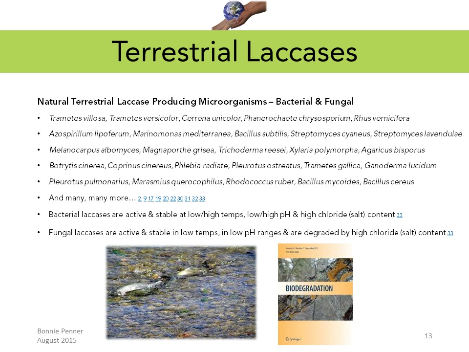These copper-dependent enzymes are found widely in nature, inclucing in humans, animals, oceans, fresh water and wetland environments. I believe applying laccase enzymes in innovative ways may offer a safe, natural and effective approach to addressing the widespread damage caused by plastic pollution.